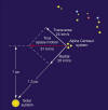 Example: What is the parallax angle to the nearest star, Proxima Centauri, which is 1.3 pc (15,000 AU's) away from us? Answer: p=B/d=1/1.3=0.77 arcseconds